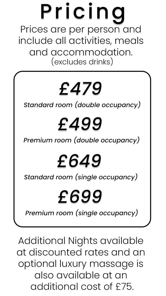 Throughout your stay you will be treated to a selection of local, seasonal & sustainable breakfasts, lunches, dinners and snacks prepared freshly onsite by the Mindful Menu Team